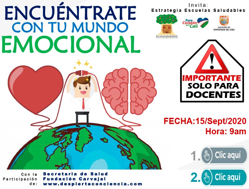 Desde la Estrategia Escuelas Saludables te invito a participar de la capacitación «Encuéntrate con tu mundo emocional», mañana, martes 15 de septiembre a las 09:00 a.m.; tenga en cuenta que esta invitación es solo para Docentes.